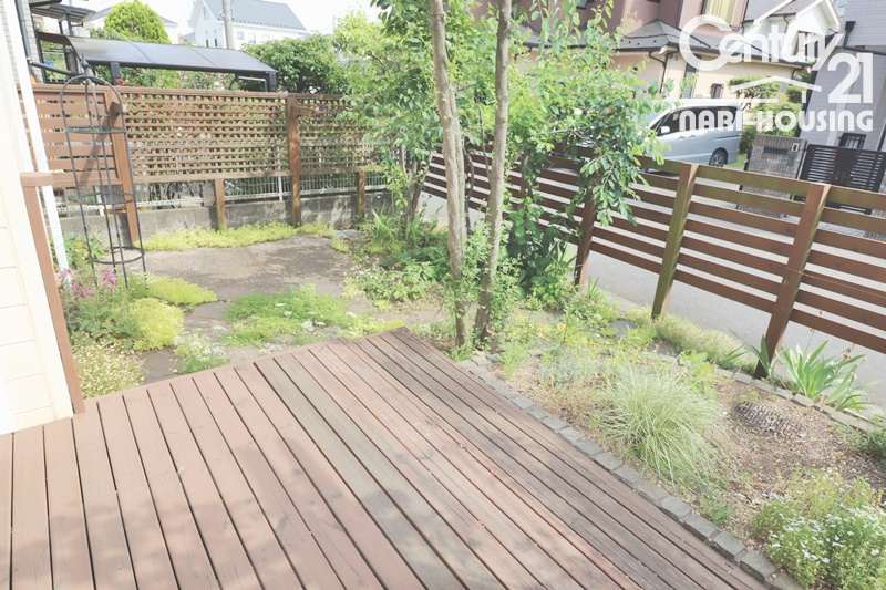 広々としたお庭には、ウッドデッキも付いており、